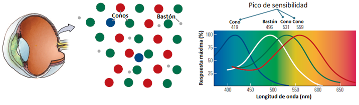 Sensibilidad de los conos y bastones en función de la luz recibida.