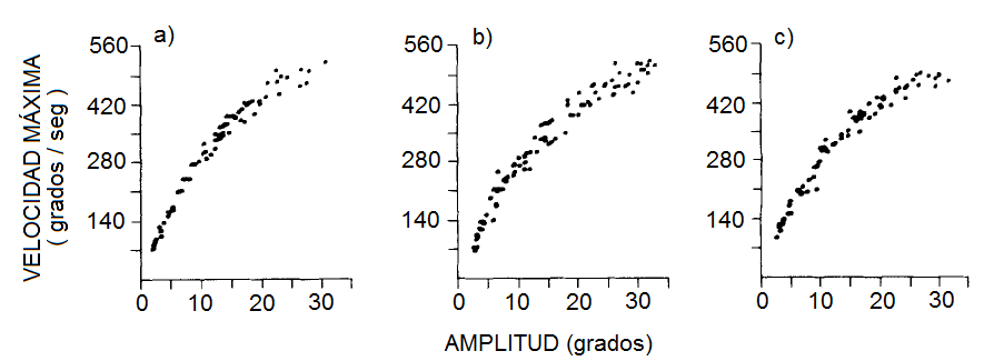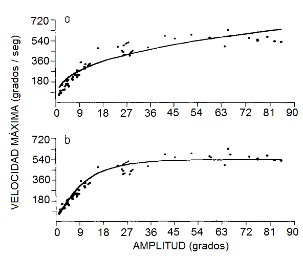 Baloh R.W., Sils A., Kumley W.E., Honrubia V., Quantitative measuremente of saccade amplitude, duration, and velocity, Neurology 25 , 1065 (1975).