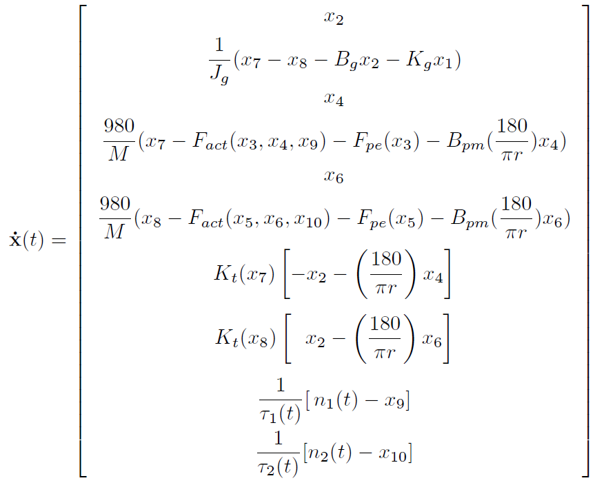 En el capítulo 5 se presentaron modelos físicos que permiten describir los movimientos de los ojos. La descripción está basada en la representación del sistema músculo-tendón en términos de sistemas de fuerzas elásticas que actúan en paralelo con fuerzas de fricción. Para realizar una buena descripción es necesario incluir fuerzas de carácter pasivo y otras de tipo activo. Además, estas fuerzas están reguladas por las órdenes neurales que dan lugar a la activación y que regulan la intesidad de las mismas. En general, para que el modelado sea apropiado, se deben tener en cuenta fuerzas que dependen de la extensión que sufre el músculo así como también la velocidad con la que este se extiende.
