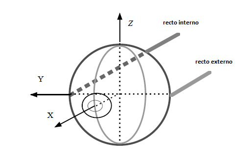 En cuanto a descripción del movimiento en sí, deben considerarse a los globos oculares como esféras rígidas las cuales están unidas por 6 puntos a los músculos los cuales generan los momentos de fuerza que dan lugar a las rotaciones. Debe sumarse además, el momento de fuerza generado por el septum que soporta a los ojos en las órbitas oculares. Entonces, para poder describir los movimientos de los ojos es necesario resolver simultaneamente el conjunto de ecuaciones asociados a los músculos (incluyendo a los tendones) y las correspondientes a los globos oculares. Un gran número de parámetros están involucrados en la definición las fuerzas producidas por los 6 conjuntos de músculo-tendón. Para poder resolver las ecuaciones puede recurrirse a dos métodos. En primer lugar, se puede obtener la información de los parámetros a partir de mediciones de los mísmos. Un método alternativo y a nuestro criterio más eficiente, es el de ajustar todos los parámetros de manera de minimizar el error entre los movimientos sacádicos y los resultados de las ecuaciones. En este trabajo nosotros hemos implementado el primero de los métodos, sobre todo para conocer los detalles íntimos relacionados con la caracterización física de los sistemas músculo-tendón. Este es, a nuestro criterio, el principal elemento en la descripción de la dinámica ocular. La representación de los ojos en sí es lo que menos dificultad presenta.